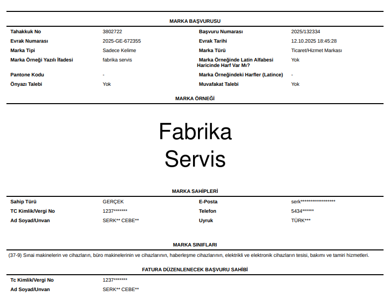 Marka Patent Bilgilerimiz Aşağıdaki Gibidir.